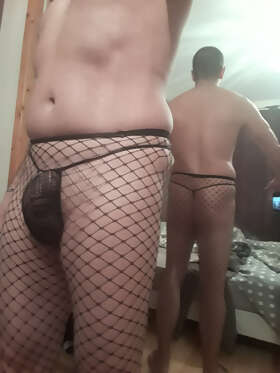 Bonjour, bises. Très beau choix de lingerie, sexy et excitant ainsi vêtu pour câliner ta belle queue lisse, ton petit cul!